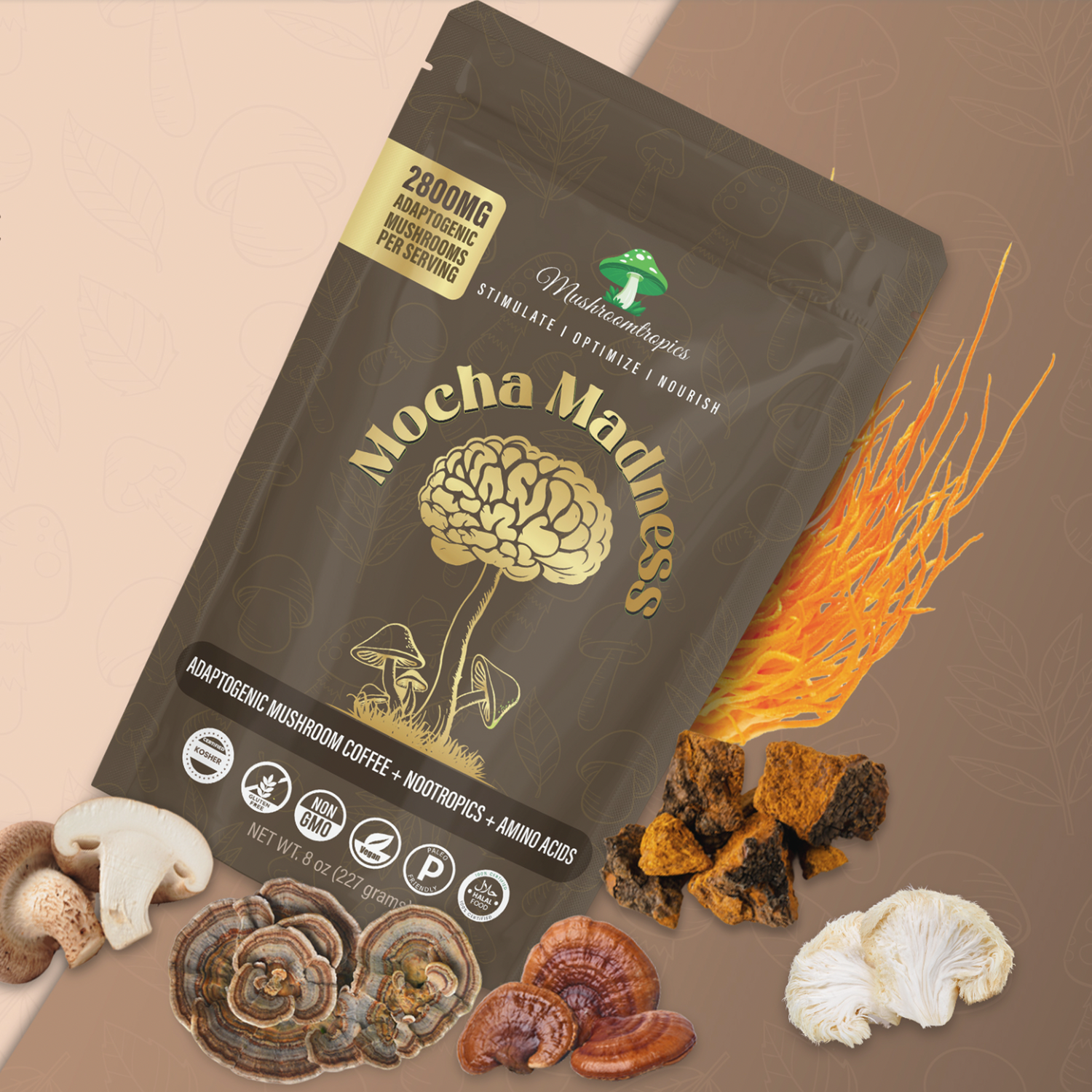 "The Mocha Madness mushroom coffee bag made me mad with an incredible surge of productive and positive energy. I drink this lovely product every morning, and feel laser focused. I don't get anxious or edgy, and my gut is feeling optimized. Plus, the taste is smooth, light, and chocolately mocha. No more traditional coffee for me. This is a game changer."